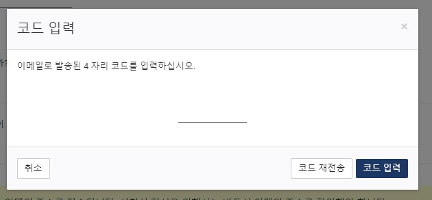 다 적고 나면 이메일 확인을 해야하는데 내 메일로 4자리 코드가 포함된 이메일이 발송된다고 한다.