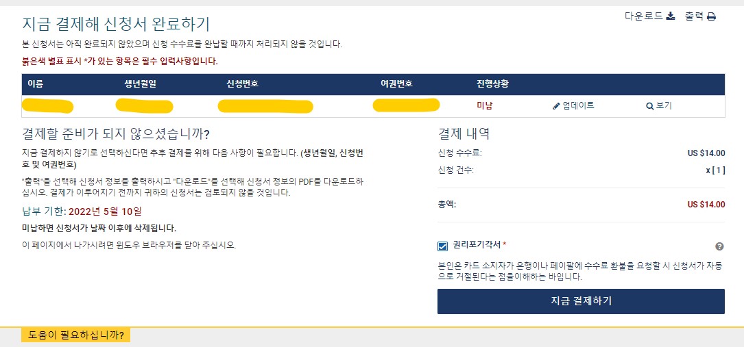 14달러 즉 17782.24 정도를 결제해야한다. 비자 발급 결제!
